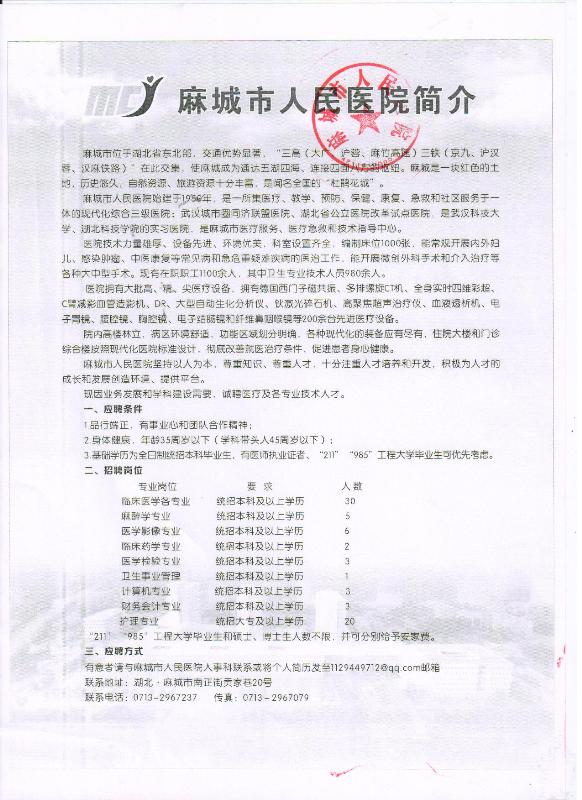 麻城市人民医院招聘启事