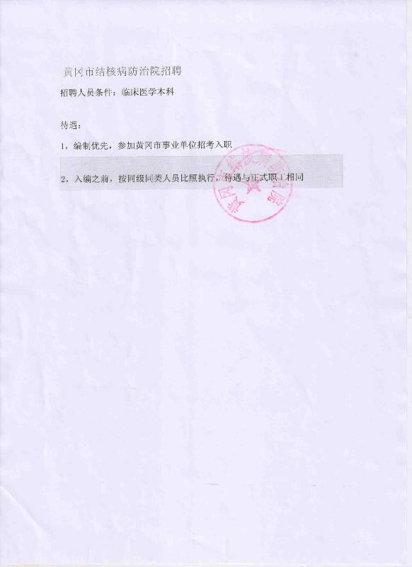 黄冈市结核防治院招聘启事