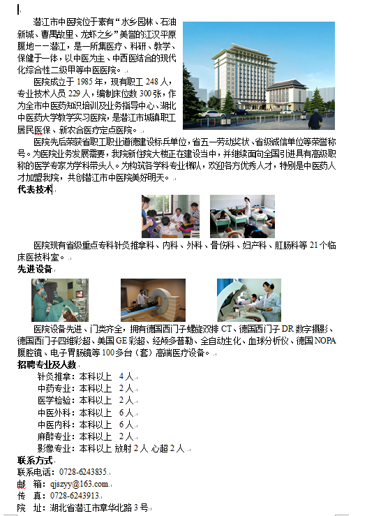2015年潜江市中医院招聘简章