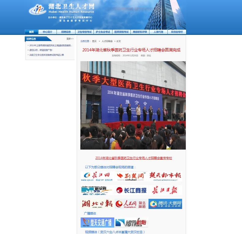 湖北卫生人才网对2014年11月25日医疗招聘会的信息发布